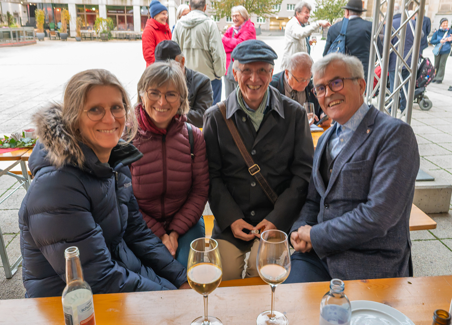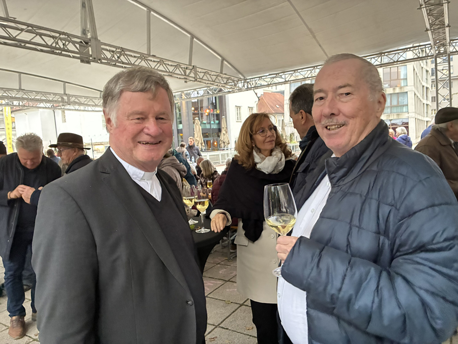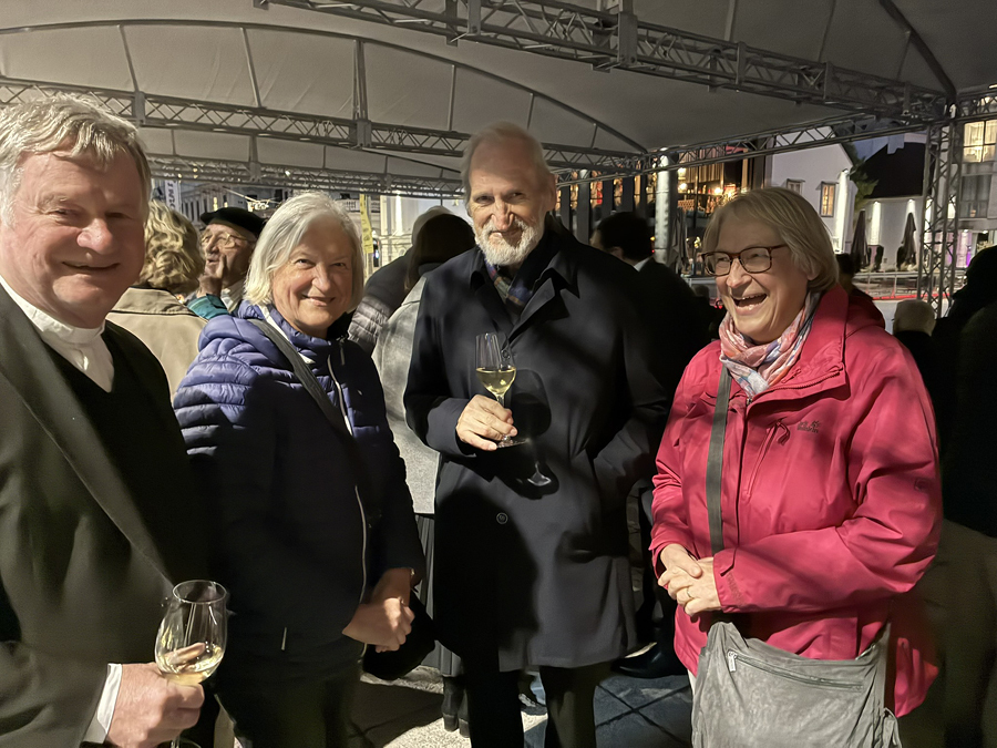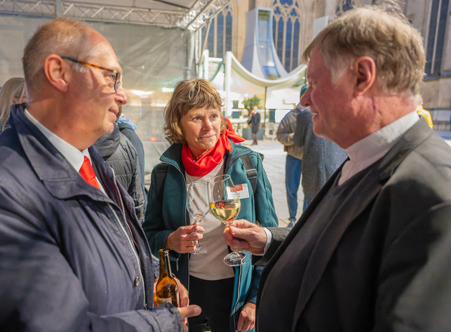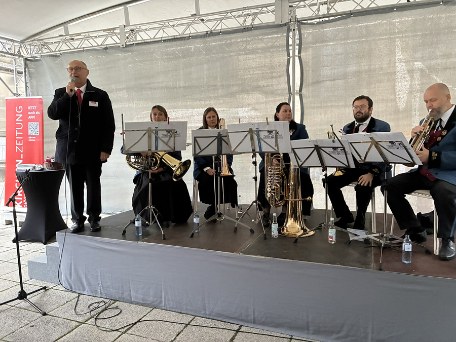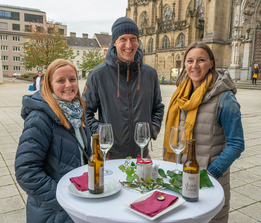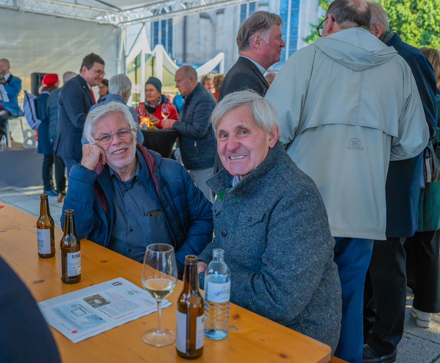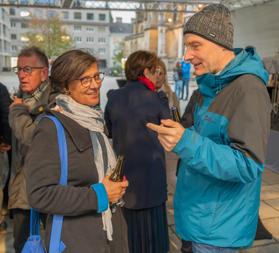Im Anschluss an den Gottesdienst fand eine kleine Feier mit Agape und Musik auf dem Domplatz statt. Knapp 500 Gäste folgten der Einladung in den Mariendom und zur Agape und feierten mit uns das 80jährige Bestehen der Kirchenzeitung. Es spielte das Bläser-Ensemble vom Musikverein St. Magdalena.