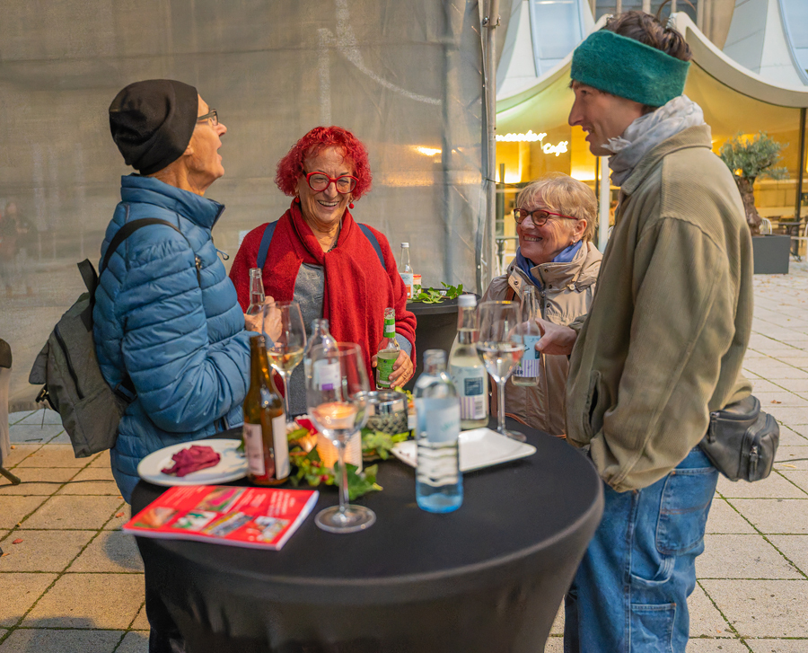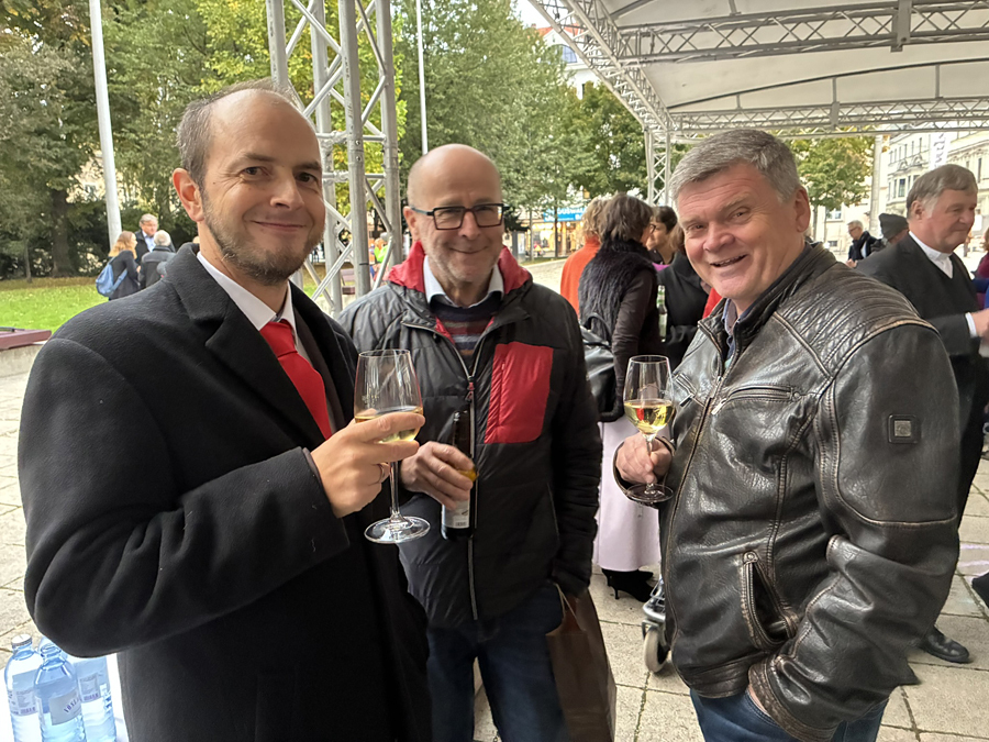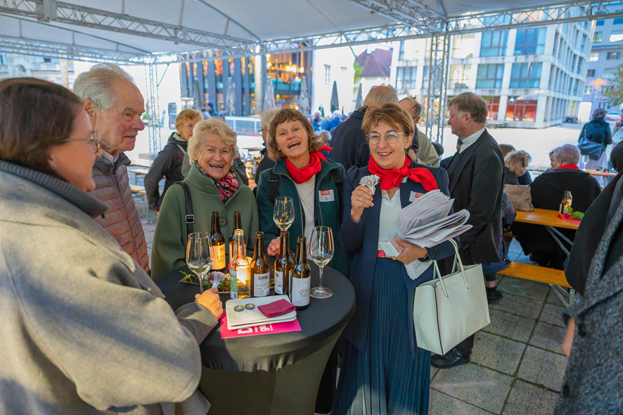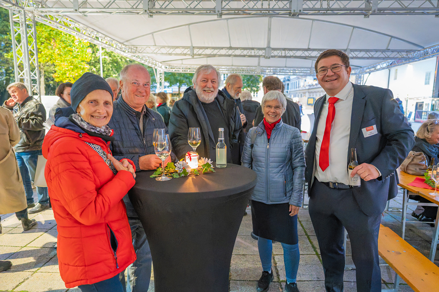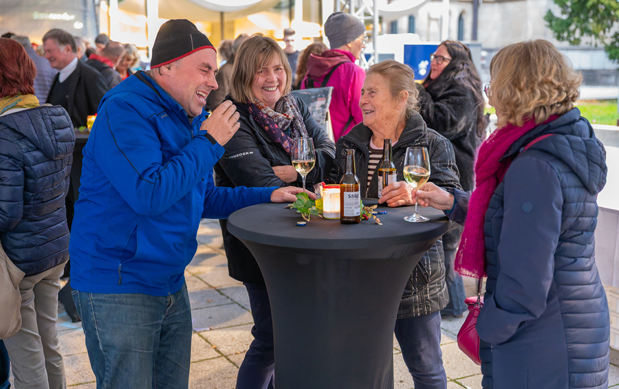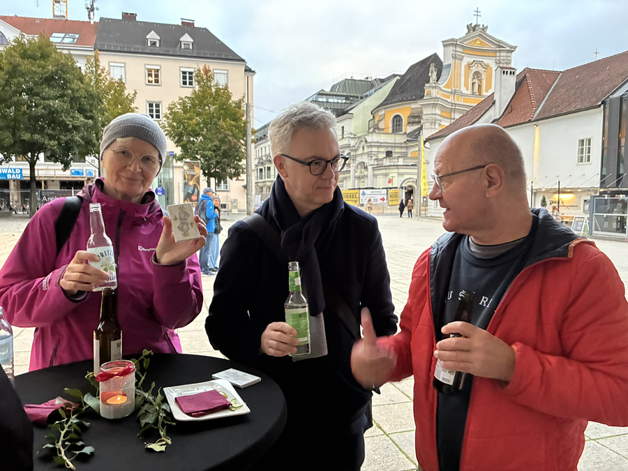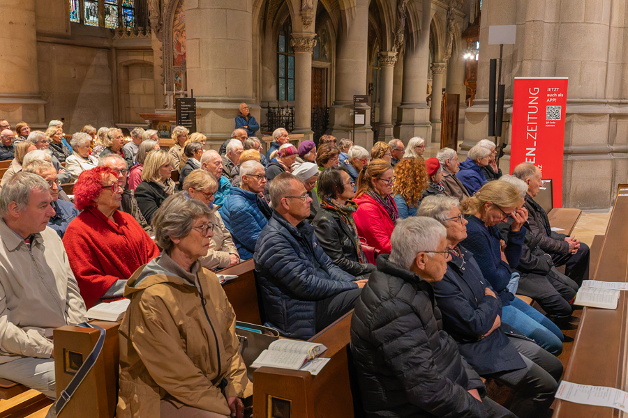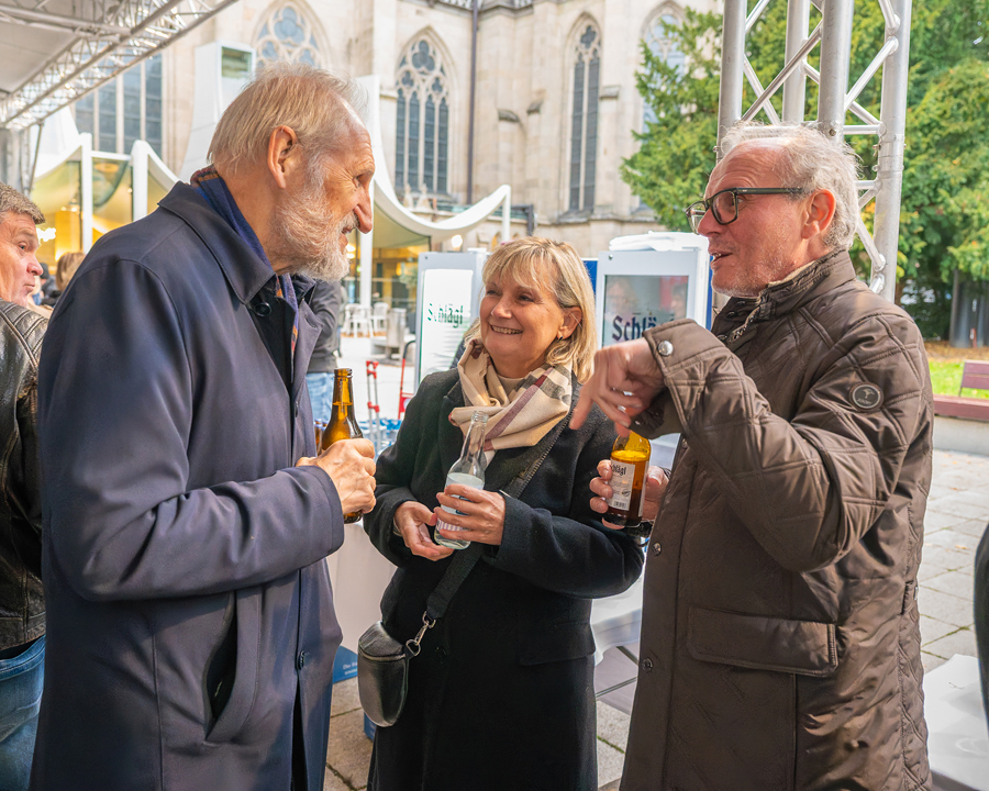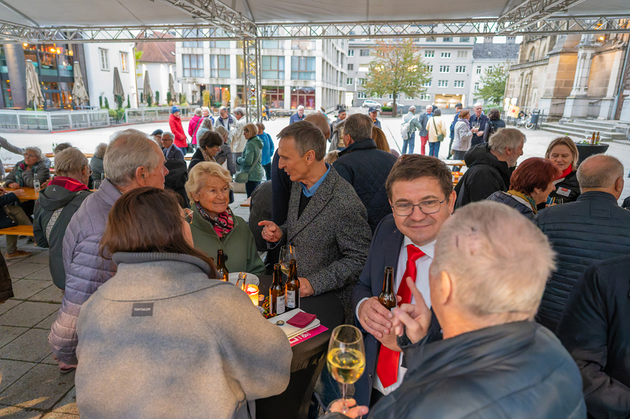Im Anschluss an den Gottesdienst fand eine kleine Feier mit Agape und Musik auf dem Domplatz statt. Knapp 500 Gäste folgten der Einladung in den Mariendom und zur Agape und feierten mit uns das 80jährige Bestehen der Kirchenzeitung. Es spielte das Bläser-Ensemble vom Musikverein St. Magdalena.