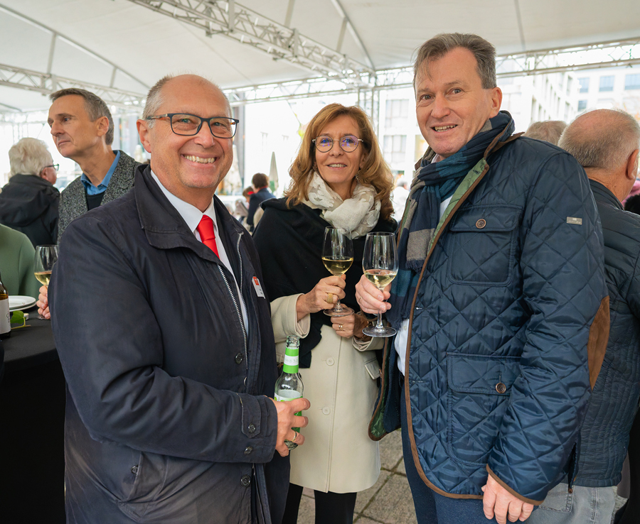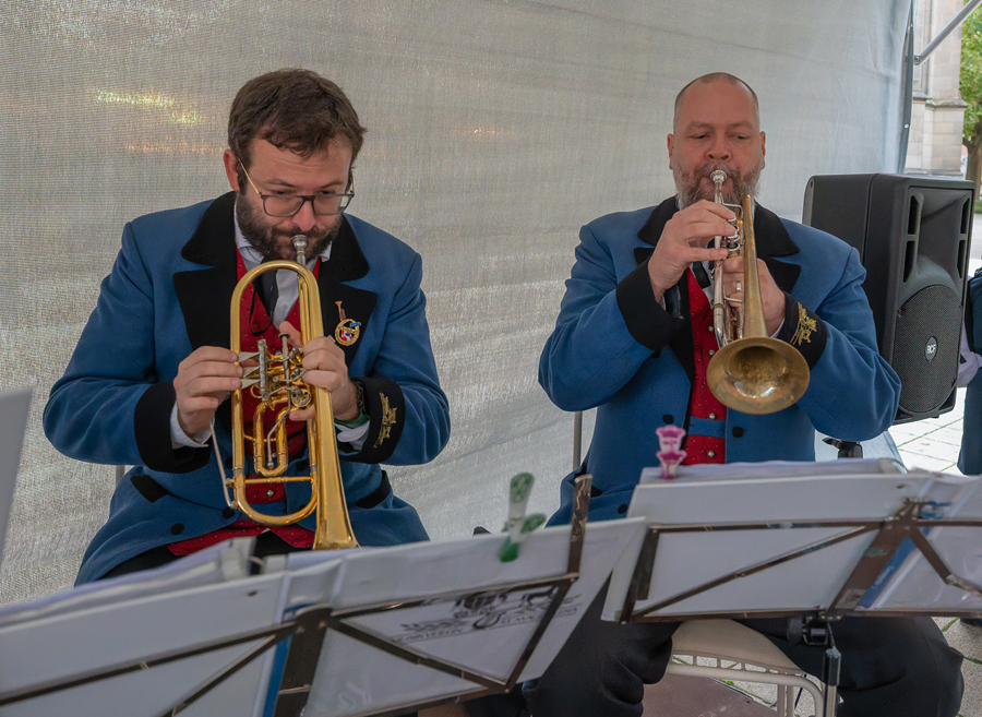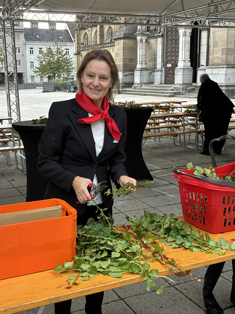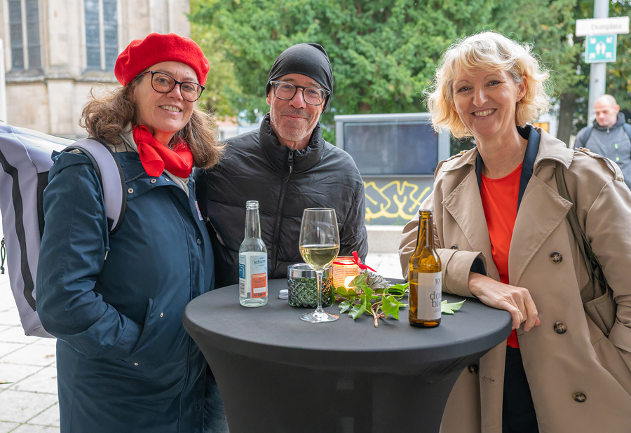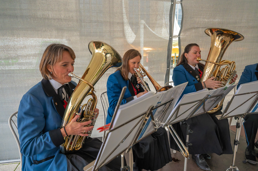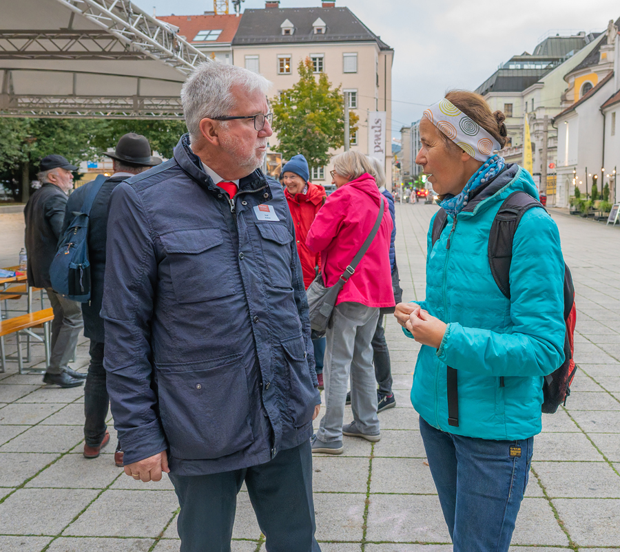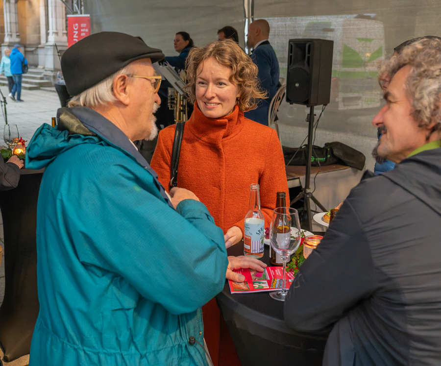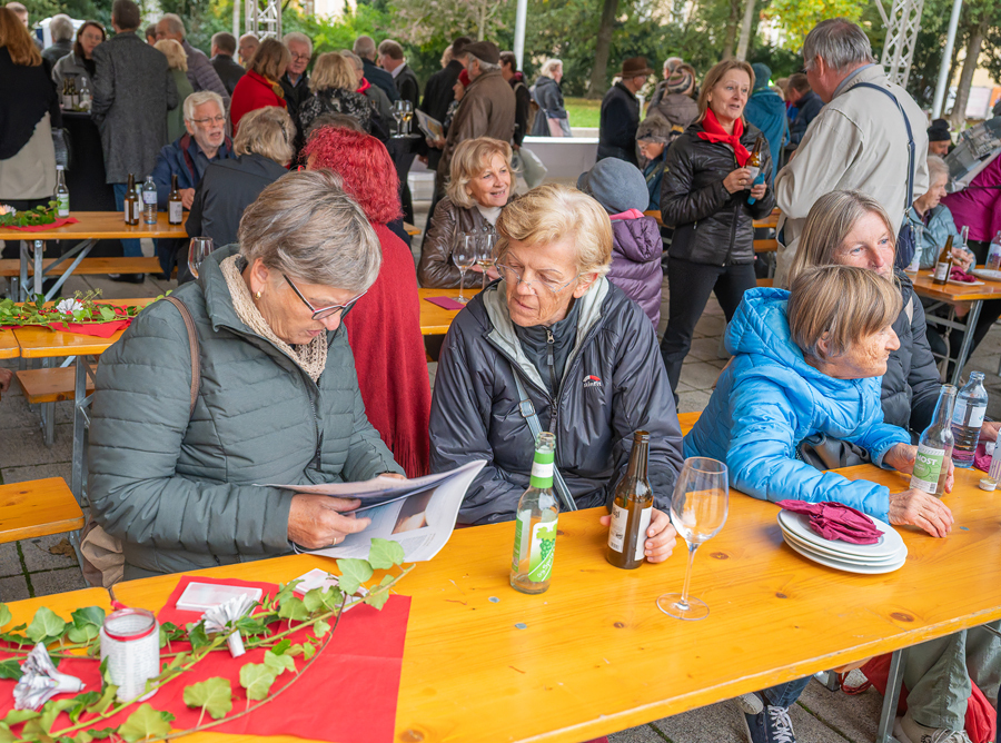 Im Anschluss an den Gottesdienst fand eine kleine Feier mit Agape und Musik auf dem Domplatz statt. Knapp 500 Gäste folgten der Einladung in den Mariendom und zur Agape und feierten mit uns das 80jährige Bestehen der Kirchenzeitung. Es spielte das Bläser-Ensemble vom Musikverein St. Magdalena.
