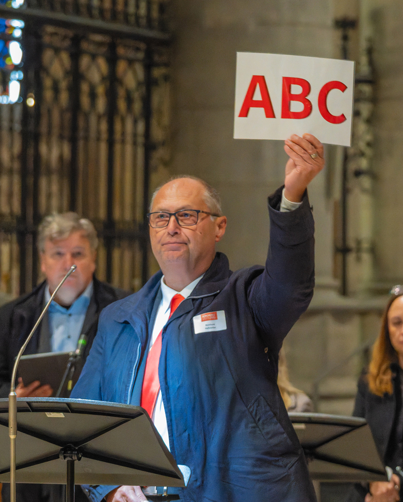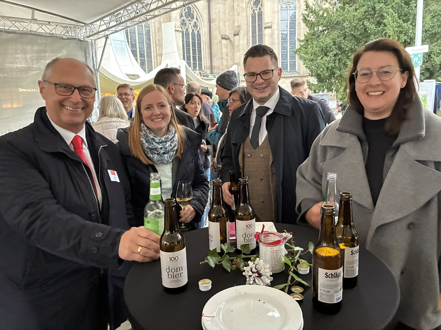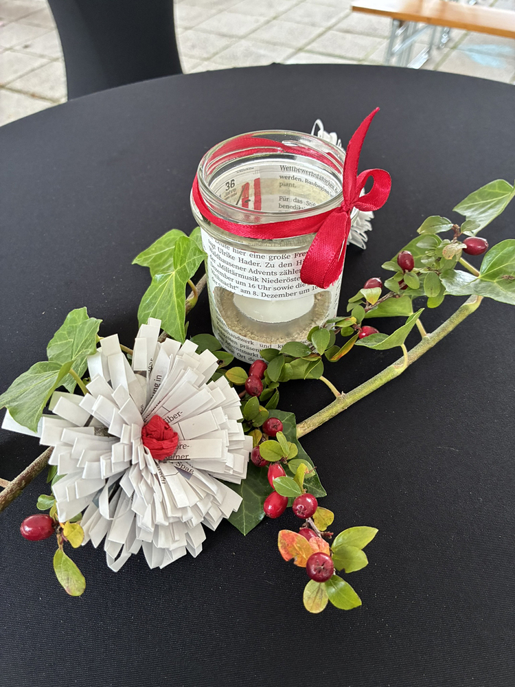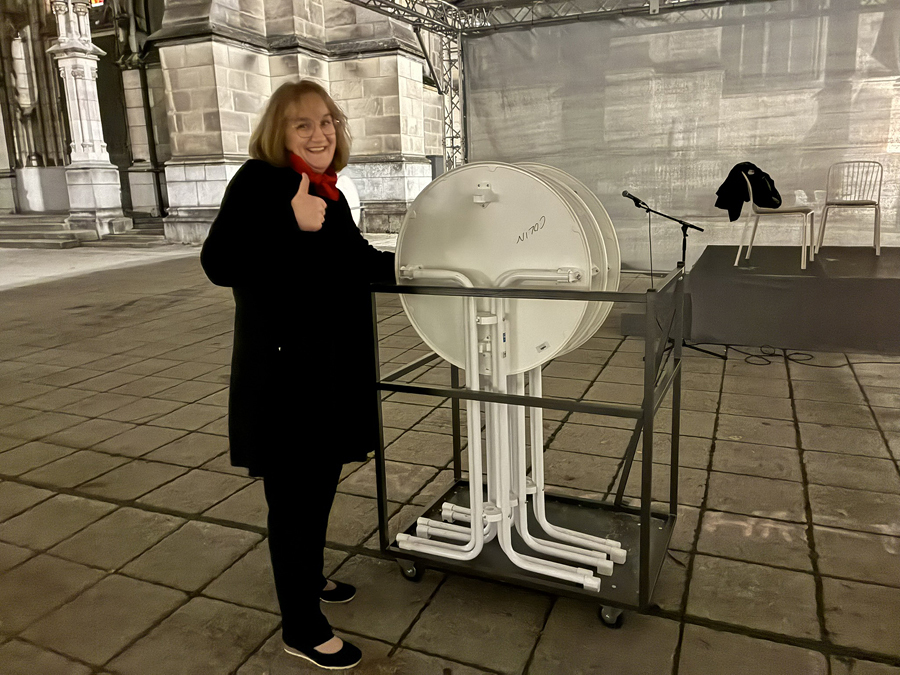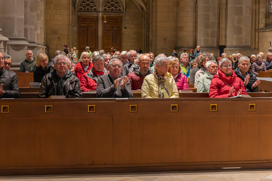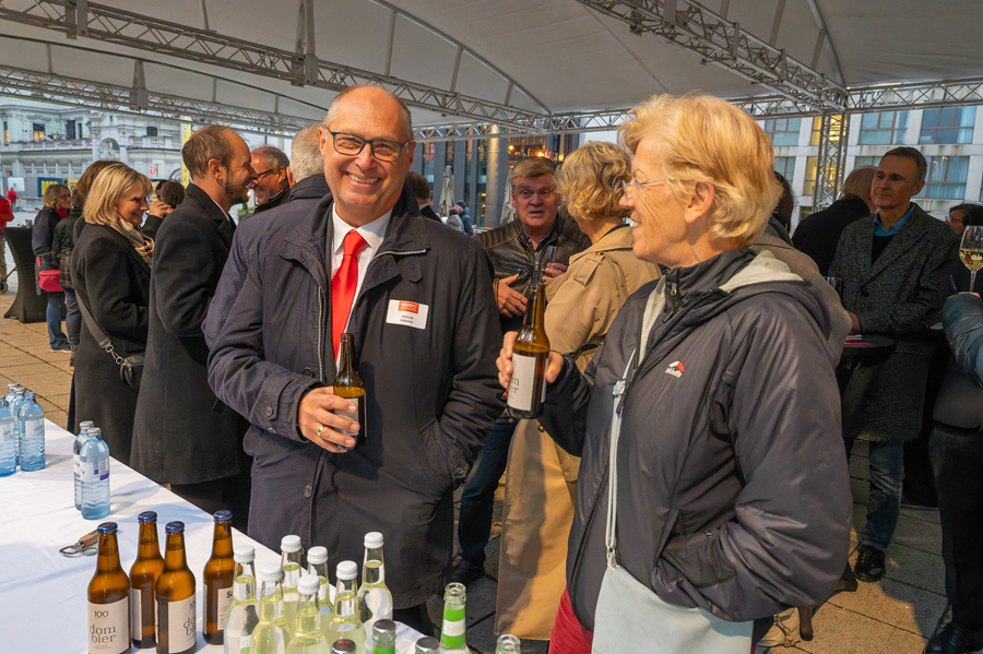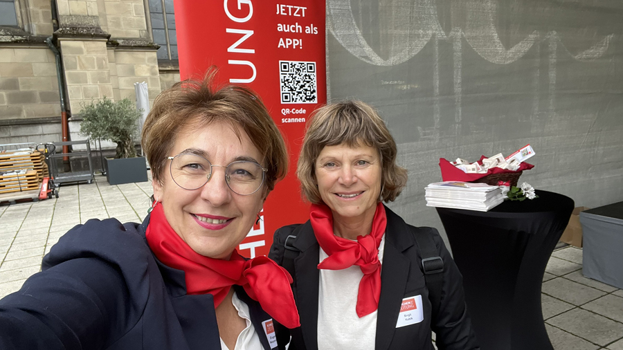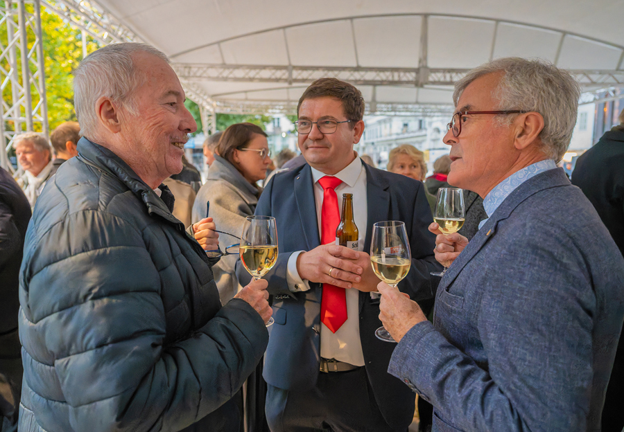 Im Anschluss an den Gottesdienst fand eine kleine Feier mit Agape und Musik auf dem Domplatz statt. Knapp 500 Gäste folgten der Einladung in den Mariendom und zur Agape und feierten mit uns das 80jährige Bestehen der Kirchenzeitung. Es spielte das Bläser-Ensemble vom Musikverein St. Magdalena.