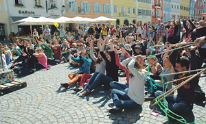 Zu den öffentlichen Höhepunkten zählten ein Flashmob und die abschließende Sendungsfeier am Montag jeweils am Stadtplatz. Speziell der Flashmob, bei dem die Jugendlichen nach den Regeln des beliebten Kinderspiels „Feuer, Wasser, Luft" mit verschiedenen Aktionen zu den vier Elementen mitten am Stadtplatz für geordnetes Chao sorgten, blieb vielen Teilnehmer/innen in besonderer Erinnerung.