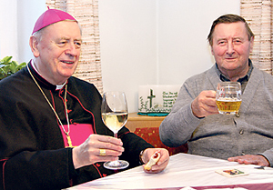 St. Agatha. Im Rahmen der Pfarrvisitation besuchte Bischof Ludwig Schwarz den ehemaligen Mesner Josef Hofer, der 31 Jahre lang sein Amt ausübte, und gratulierte zum 80. Geburtstag.