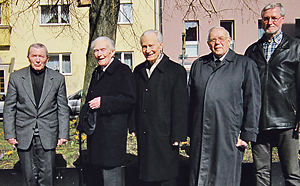 - Linz-Heilige Familie. Ein besonderes Jubiläum feierte kürzlich Altpfarrer Josef Weinberger (links): Nach vier Kaplansjahren in Windischgarsten ist er seit 50 Jahren Seelsorger (Kaplan, Pfarrer, Kurat) in der Linzer Familienpfarre. Altbischof Maximilian Aichern (2. von rechts) gratulierte dazu bei einem Jubiläumsgottesdienst. Pfarrer Christian Zoidl (rechts) konnte zur Feier auch den ältesten Diözesanpriester Prälat Johann Weidinger (98 Jahre; 2. von links) sowie Prälat Dr. Wilhelm Zauner (84 Jahre; mitte), beide in der Pfarre wohnhaft, begrüßen.