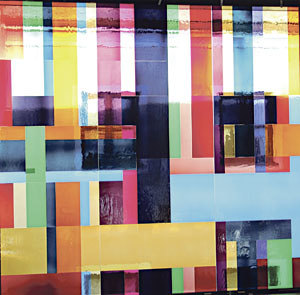 Kirschrot, hellblau, orange, hellbraun, gelb. Farben in allen Abstufungen, Balken in quadratischer, rechteckiger Form oder als Tau. Es sind die Farben der gotischen Fenster der Pfarrkirche in Sierning, die die Künstlerin Bernadette Huber mitgenommen hat in das neue Pfarrzentrum „Fokus“. Dort hat sie an der Außenfront des Neubaus ein Glasfenster in zeitgenössischer Formensprache gestaltet. Alt und Neu, Kirche und Pfarrheim hat die in Steyr lebende Künstlerin damit verbunden. Das Glasfenster ist im Rahmen eines geladenen Wettbewerbs für „Kunst am Bau“ als Siegerprojekt hervorgegangen.