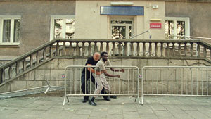 Das Paar verlegt die Handlung von Albert Camus’ berühmter Erzählung „Der Fremde“ in das heutige Polen, das sich ebenso mit Migrationsentwicklungen konfrontieren muss wie jedes andere Land in Europa. Der Fremde ist in diesem Fall Rafał Mularz, der sich sein Leben so eingerichtet hat, dass er sich von der Welt um ihn herum abschotten kann, bis er eines Tages bei einer seiner Laufrunden mit einem vom Meer angeschwemmten Immigranten konfrontiert wird. Bestechend ist, wie die Filmemacher Sasnal scheinbar beiläufig die xenophobe Stimmung in Polen einfangen, dabei aber jeglichen Sozialrealismus meiden.