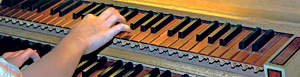 Erreicht man die Pedale leicht? Man übt halt und irgendwann hat man es im Gefühl. Am Anfang schaut man hinunter zu den Pedalen, dann weiß man den Abstand. Ich schaue nur mehr hin und wieder hinunter. Die Noten kennt man auch nach einer Zeit. Früher hat mein Papa die Register für mich gezogen. Mit den Füßen habe ich die Pedale gerade erreicht. Jetzt erwische ich alles problemlos.