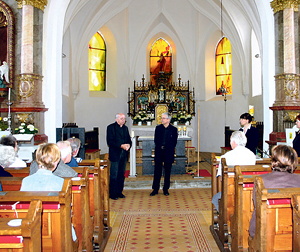 Ewald Walser erläuterte seinen Zugang zu den Glasfenstern in Dorf an der Pram