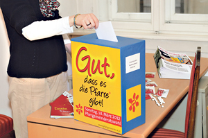Bei den letzten Pfarrgemeinderatswahlen – 2007 – haben 26,1 Prozent der Wahlberechtigten gewählt. Es sind etwa ein Viertel mehr zur Wahl gegangen, als an Sonntagen durchschnittlich zum Gottesdienst kommen. Auf ein ähnliches demokratisches Signal hoffen auch heuer am 18. März die Verantwortlichen in der Diözese und in den Pfarren. Ungefähr 800.000 Katholiken sind eingeladen, aus 7000 Kandidat/innen etwa 5000 Mitglieder für die Pfarrgemeinderats-Gremien zu wählen. Auch die KirchenZeitung ist am Wahlsonntag in vielen Pfarren präsent: Pfarrliche Mitarbeiter/innen verteilen Wahlzuckerl der KirchenZeitung als Dankeschön: Danke, dass Ihnen die Pfarre ein Anliegen ist!