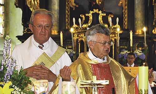 Dimbach. Vergangenes Wochenende feierte Dimbach (Bezirk Perg) das Jubiläum „500 Jahre Markterhebung“. Bei dem abwechslungsreichen Festprogramm wurden unter anderem Theaterszenen aus der Geschichte des Ortes gezeigt und ein Heimatbuch präsentiert. Den Festgottesdienst zelebrierten Diakon Franz Leonhartsberger und Pfarrer Mag. Krzystof-Mieczyslaw Jakubiak. Diakon Leonhartsberger betonte in seiner Festpredigt die Rolle der Pfarrkirche als beliebtes Ziel von Wallfahrten, die bereits eine jahrhundertelange Tradition haben.