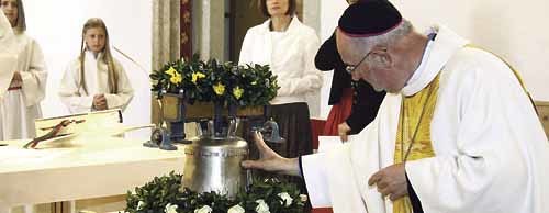 Lange Zeit galt das Jahr 1309 als Erhebungsjahr Grünbachs zur eigenen Pfarre. Bis vor einigen Jahren im Staatsarchiv in München eine noch ältere Urkunde entdeckt wurde, die den 25. Juli 1261 als eigentlichen Gründungstag ausweist. Grund genug also für die Pfarre Grünbach, heuer dieses uner-wartet frühe 750-Jahr-Jubiläum zu begehen. Aus diesem Anlass wurde für den kleinen Turm der Pfarrkirche eine Jubiläumsglocke gegossen. Diese „Wandlungs- und Auferstehungsglocke“ wurde letztes Jahr in der Glockengießerei Perner in Passau hergestellt. Am vergangenen Sonntag wurde sie vom Propst des Stiftes St. Florian, Johann Holzinger, geweiht (Bild) und unter großem Applaus zum ersten Mal geläutet.