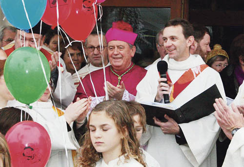 An die 500 Menschen kamen, am 12. Dezember 2010 die Weihe und die Eröffnung des Seelsorgezentrums Lichtenberg mitzufeiern. Herzstück des Zentrums ist die kreisrunde Kirche.