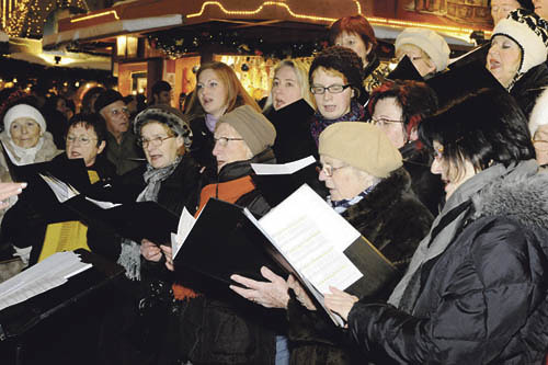 Öffentliches Singen erfreut sich im Advent großer Beliebtheit. Dieses Foto hat unser Fotograf am Barbaratag am Linzer-Hauptplatz-Christkindlmarkt aufgenommen, wo der Chor der LinzAG gesungen hat.
