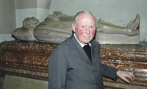 Pfarrer Josef Grafeneder hat am 26. November 2010 das Münzbacher Heimatbuch präsentiert. Der Autor des umfangreichen Werks steht beim Grabdenkmal (Kenotaph) von Graf Joachim Enzmilner, das sich in der nördlichen Fensternische der Münzbacher Kirche befindet. Enzmilner, der „zweite Gründer von Münzbach“, ist in spanischer Hoftracht, der vornehmsten Kleidung zur damaligen Zeit, und mit Rosenkranz dargestellt.