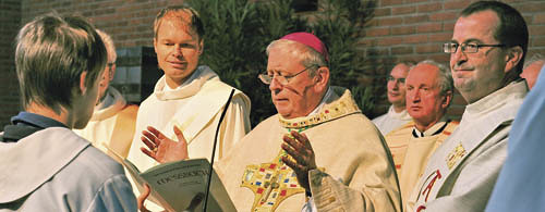 Gleich über zwei neue Diakone kann sich Timelkam freuen. Vergangenen Sonntag weihte Bischof Dr. Ludwig Schwarz Stromverkäufer Bernhard Pfusterer (Jahrgang 1969, im Bild links) und Amtstierarzt Dr. Herbert Seiringer (Jahrgang 1964, rechts im Bild). Zwei Diakone aus einer Pfarre, die gleichzeitig ihre Ausbildung machten, ist alles andere als ein Zufall. Die beiden sind miteinander verschwägert. „Wir haben uns gegenseitig motiviert und gesagt, dass wir das gemeinsam durchziehen“, erzählt Herbert Seiringer. Gemeinsam wolle man nun das Feuer am Glühen halten. Während Pfusterer in der Ministranten- und Jungschararbeit tätig sein will, wird sich Seiringer besonders der Firmvorbereitung und der Taufen widmen.