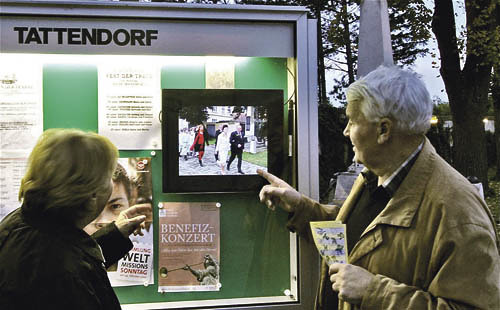 Um den Schaukasten bei der Kirche attraktiver zu gestalten, hat die Pfarre Tattendorf ihn mit einem digitalen Bilderrahmen ver-sehen. Die bewegten Bilder sind anziehend.