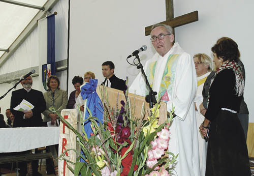 Pram. An die 800 Männer und Frauen pilgerten vergangenen Sonntag (19. 9. 2010) auf den Schulterberg. Wo am 20. September 1626 geschätzte 2000 Männer in der Bauernkriegsschlacht am Schulterberg ihr Leben verloren und die gesamte Region in großes Elend stürzte, wurde – als spiritueller Beitrag zur Landesausstellung 2010 – ein ökumenischer Gottesdienst abgehalten. Die Feier stand unter dem Thema Toleranz und Friede und wurde von einem Team (im Bild) aus evangelischen und katholischen Amtsträgern (Pfarrer Johann Kaltseis aus Pram und Pfarrer Andreas Hochmeier aus Wallern/Grieskirchen-Gallspach) sowie Ehrenamtlichen vorbereitet.