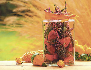 Mit Naturmaterialien hat man wenig Aufwand und erzielt eine tolle Wirkung. Ein paar Kastanien, Eicheln und bunte Blätter in ein Körbchen oder eine Schale gelegt: fertig! Die Natur macht es draußen ja vor, wie einfach man herbstliche Stimmung ins warme Zimmer bringen kann.