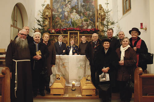 Die Gebeine von P. Antonin Schröcksnadel und P. Theophil Ruderstaller wurden am 16. Jänner 2010 in der Kapuzinerkirche Innsbruck der Ordensgemeinschaft der Kapuziner übergeben. Das Ehepaar Gisela und Gunther Gensch konnte die sterblichen Überreste der Kapuziner-Missionare, die 1946 in Nordost-China erschossen wurden, zurück in ihre Heimat bringen. (Die KIZ berichtete in Nr. 51/2009.) An der Feier nahm auch eine Gruppe von Gläubigen aus Ostermiething teil, dem Geburtsort von P. Theophil Ruderstaller – im Bild mit dem Kapuziner Br. Gaudentius Walser (links) und Bischof em. Maximilian Aichern. In seiner Ansprache betonte Bischof Manfred Scheuer die Wichtigkeit des Wachhaltens der Erinnerung dessen, was unsere Hoffnung stärkt.