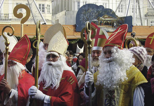 Linz. Am 6. Dezember schickte die Aktion SEI SO FREI, die „Dritte Welt“-Organsiation der KMB sechzig Nikoläuse durch Linz: um an die Kinder Süßigkeiten zu verteilen, vor allem aber, um an die Menschen in den Ländern des Südens zu erinnern. Die Aktion SEI SO FREI sieht in Bischof Nikolaus „ihren Schutzheiligen“: Die Not sehen und helfen ist für sie Programm das ganze Jahr hindurch. Zum Abschluss ihrer „Stadtmission“ trafen sich die 60 Bischöfe am Linzer Hauptplatz zu Österreichs größtem Nikolaustreffen. Dort dankten Bischof Ludwig Schwarz, LH Josef Pühringer, LH-Stv. Erich Haider und die Linzer Gemeinderätin Erika Rockenschaub der KMB für ihren Einsatz.