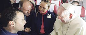 Zwei Flugbegleiter gaben sich vor dem Papst noch einmal ihr Ja-Wort; zivil ist das Paar bereits seit acht Jahren verheiratet.