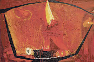 Beim Betrachten des Bildes wird einem warm: Rot- und Orange-Töne bestimmen das Ölbild, in der Mitte ein gelber Farbfleck, der an das Lodern einer Kerze erinnert. Der christlich gefärbte Blick auf das Werk von Anatole Ak mag hier viel erkennen, das zur Advent- und Weihnachtszeit passt. Der Künstler selbst nennt sein Bild „Lochmind“ und lässt die Interpretation offen. Werke von Ak, Blaas, Bangerl, Estermann, Haas u.a. sind nun in der Weihnachtsausstellung der Galerie Pehböck in Naarn bis 23. Dezember 2017 zu sehen.
