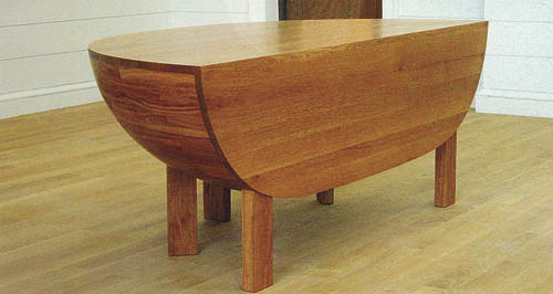 Um die Mitte versammelt. Das Brot brechen und miteinander das Leben feiern – der Altartisch aus Holz erinnert an einen angeschnittenen Laib Brot.