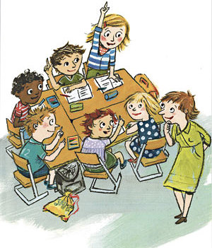 Annette und Ernst gehen jetzt gemeinsam in die erste Klasse. Frau Jäger ist ihre Lehrerin und sie ist meistens sehr nett. Aber sie achtet auch darauf, dass sich die Kinder ordentlich melden, wenn sie was zu sagen haben. Da heißt es Arm hoch und warten, bis man aufgerufen wird. Nun möchte aber Annette schon so lange was sagen und Frau Jäger hat sie noch immer nicht an die Reihe genommen. Gut, dass es Ernst gibt. Auch er hat den Arm in der Höhe und was sagt er, als er aufgerufen wird? „Frau Jäger, Sie müssen auch Annette drannehmen!“ Endlich kann sie erzählen, dass sie am Wochenende ein kleines Kätzchen bekommen hat. Die Aufregung ist groß, als ein Puppenspieler die Klasse besucht, es folgt der Wandertag in den Zoo und eines Morgens sitzt zur Verwunderung der Kinder ein anderer Lehrer am Pult, weil Frau Jäger krank ist – das sind nur einige ereignisreiche Tage, die Annette und Ernst in der Schule erleben.