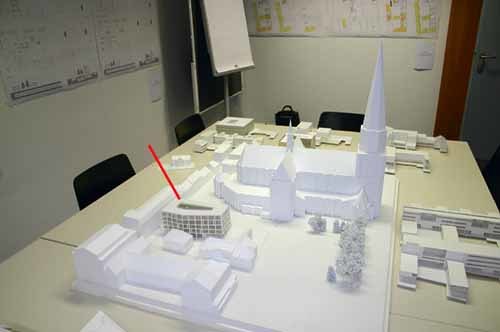 Die Instandhaltung des Maria-Empfängnis-Domes in Linz ist teuer. Daher hat die Eigentümerin des Domes, die Bischof-Rudigier-Stiftung, die Stiftung St. Severin beauftragt, die Erträge aus der Bewirtschaftung von Flächen um den Dom zu mehren. Dazu wurde ein Architektenwettbewerb für ein Hotel an der Herrenstraße ausgeschrieben. Als Siegerprojekt wurde in der Jurysitzung am 3. März der Entwurf von Architekt Josef Hohensinn aus Graz pämiert (siehe Pfeil im Foto) – ein fünfgeschoßiges Bauwerk mit Glasfront. – Der Bau soll 2008 errichtet sein.