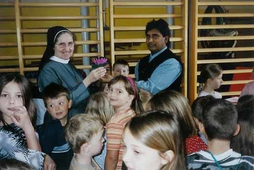 Die Kinder haben Freude auch am „sozialen Lernen“. Sr. Fabiola hat im Rahmen eines Projektes einen indischen Künstler in die Klasse geladen. Foto: Kreuzschwestern