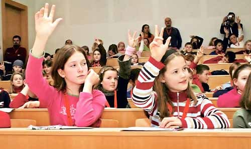 „Auf der Uni können sich die Studierenden aussuchen, was sie hören wollen, und sie hören nur das, worauf sie Lust haben!“, mutmaßt Theo alias Prof. Michael Rosenberger. Ganz so ist es nun auch wieder nicht, muss Theo, der gemeinsam mit Sophia erklärt, wie es auf der Uni abläuft, zugeben. Aber – es stimmt. Auf der Uni ist man schließlich freiwillig. Zumindest von den hundert Hörer/innen, die am Freitag, den 20. Jänner bei der ersten Kinder-Uni an der Katholisch-Theologischen-Privatuni inskribieren, ist das anzunehmen.