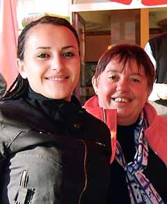 Barbara Greinöcker (rechts) mit einer 21-Jährigen, die im Februar 2004 in den Kosovo zurückgekehrt ist, weil ihre Mutter erkrankte. Sie floh einst, weil ihr Vater sie verheiraten wollte. Als sie zurückkehrte, wurde sie von der eigenen Familie verstoßen. „Es gibt keinerlei Projekte für Mädchen und junge Frauen im Kosovo, die sich gegen die patriarchalen Familienstrukturen wehren und daher bedingungslos verstoßen werden“, lautet ein Befund der Caritas-Delegation.