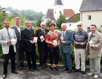Die Pfarre Rechberg präsentierte anlässlich des 14. Rechberger Dorffestes einen neuen Kirchenführer. Der Priester und Historiker Dr. Josef Honeder (Dritter v. r.) stammt aus Rechberg und war hauptverantwortlich für die geschichtliche Aufbereitung. Durch die umfangreiche Erkundung seiner Heimat gelingt es dem ehemaligen Direktor des Petrinums, sein profundes Wissen hervorragend zu vermitteln.