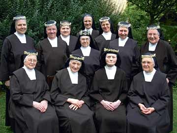 (stehend 1. Reihe): Sr. M. Hildegard Schoder aus Stephanshart (40 Jahre); Sr. M. Marianne Sinzinger aus Franking (40 Jahre), Sr. M. Luise Michal aus St. Marien (65 Jahre), Sr. M. Klarissa Kastner aus Unterweißenbach (40 Jahre), Sr. M. Fidelis Lechner aus Höhnhart (40 Jahre),