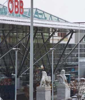 Frage: Zwei Tiergestalten dienten vielen Reisenden als Treffpunkt. Sie wurden vor dem neuen Gebäude erneut aufgestellt. Um welche handelt es sich?