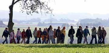 Sie kamen aus zehn Schulen im Dekanat Enns-Lorch: Schüler/innen, die letzte Woche an einer Sternwallfahrt zur Mitte des Dekanates teilnahmen.