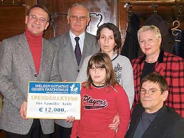Die Welser Initiative gegen Faschismus konnte die Spendenaktion für die Familie des Opfers eines Brandanschlags mit 12.000 Euro erfolgreich abschließen (Foto). Bei dem Anschlag, verübt von einem Noenazi in Wels, kam 1997 der mazedonische Arbeiter Sukuri Arifi ums Leben. Seine Frau und seine Tochter lebten nach dem Ausfall des Familienerhalters in Mazedonien im Elend. Dank der Unterstützung des Bundespräsidenten und des oö. Landeshauptmannes sowie des Welser Bürgermeisters gelang es der Initiative, für die Familie eine Aufenthaltserlaubnis in Österreich zu erwirken. Um Frau Arifi eine Existenzgrundlage zu erleichtern, führte die Welser Initiative gegen Faschismus eine Spendenaktion durch, an der sich viele Einzelspender sowie das Land Oberösterreich, die Stadt Wels, die SPÖ und die GRÜNEN beteiligten.