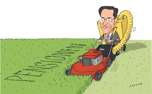 Ausgabe: 2003/17, Jesner, Grasser, Finanzminister, Rasenmäher, Gras, Pensionen