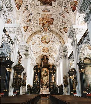 Unter Propst Laurentius Voss wurde der Barockneubau angelegt. Als Baumeister der Kirche wird Carlo Canevale genannt, die Innenarchitektur (siehe Bild) ist ein Werk des Malers und Stukkateurs Giovanni Battista Colomba.