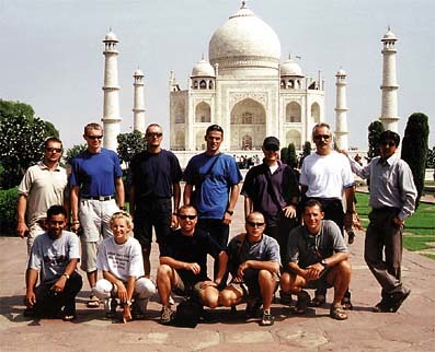 Stehend v. l. n. r.: Charly Primetzhofer, Johann Lindner, Karl Wakolm, Günter Kaiser, Christian Budin, Helmut Biberger, Sanchi (Ind. Reiseagentur).