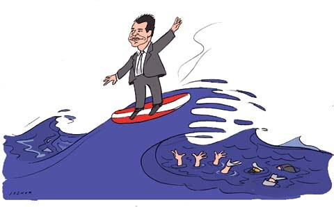 In Österreichs Innenpolitik gehen die Wogen hoch. Der Innenminister bewährt sich als Wellenreiter. Er trotzt dem Sturm, den ihm professionelle Windmacher schickten.