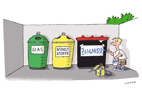 Schulschluss, Zeugnisverteilung, wohlverdiente Ferien. Natürlich gilt es, dabei auch Altlasten zu entsorgen, aber unser Karikaturist übertreibt. Wir wünschen jedenfalls viel Freude ...
