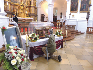 „Als ich vor dem Reliquienschrein der heiligen Therese saß, fragte ich mich: Was berühre ich da?“, sagt Sr. Anna Pointinger. Die Marienschwester vom Karmel lebt in der geistlichen Familie und Tradition der heiligen Therese (1873–1897): „Das, was Therese zurückgelasssen hat – das bedeutet ja das Wort Reliquie –, sind für mich nicht ihre Knochen, sondern ihre Botschaft vom sogenannten kleinen Weg.“ Mit dem kleinen Weg meint Therese, dass die Kleinigkeiten des Alltags, die ja unser Leben ausmachen, auch im geistlichen Leben das Entscheidende sind, so Sr. Anna. Das war im 19. Jahrhundert eine Revolution, wo Glaube sehr einseitig als religiöser Hochleistungssport gesehen wurde: Je länger Menschen beten, je öfter sie in die Messe gehen, je mehr gute Werke sie vollbringen, desto gläubiger. Der kleine Weg war eine Befreiung aus diesen Zwängen. Das Tagebuch von Therese, in dem sie ihre Erfahrungen niedergelegt hat, fand seither millionenfach Verbreitung: „Ihr geht es darum, die eigene Kleinheit und Armut anzunehmen und im Vertrauen auf Gottes Barmherzigkeit alles von ihm zu erwarten – nicht die Leistung, die Liebe macht frei“, fasst Sr. Anna zusammen. Im Zeitalter der wirtschaftlichen Hochleistungsgesellschaft auch heute eine aktuelle Botschaft. Die Marienschwestern sind mit Jugendlichen ihrer Fachschule aus Erla zu einer Feierstunde vor den Reliquienschrein gekommen. Eine Schülerin schreibt darüber: „Alles war sehr schön, aber am meisten hat mich beeindruckt, dass Therese sich für die Liebe entschieden hat. Sie ist in meinem Leben zur Botschafterin der Liebe geworden und sie zeigt mir, dass Liebe und Glaube das Wichtigste sind.“