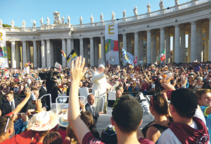 Die Frage nach dem Höhepunkt der Tage in Rom ist müßig. „Jeder Tag war ein Highlight“, sagen Marlene und Lorena, die beiden 15-Jährigen, die im September eine Lehre beginnen werden. Die Begegnung mit Papst Franziskus war aber doch ein herausragendes Erlebnis – trotz aller Anstrengung. Eine Stunde dauerte das Anstellen für die Kontrollen zum Einlass auf den Petersplatz, dann zwei Stunden warten und schließlich zwei Stunden Gebet, Ansprache und Gespräch mit dem Papst. Und das alles in der prallen Sonne. Zur Abkühlung hat die vatikanische Feuerwehr über den Minis einen Sprühregen erzeugt. Doch die Gramastettner Gruppe hat davon nichts abbekommen. „Das machte nichts“, meinen Marlene und Lorena lächelnd. „Schon das Vorprogramm war so spannend, dass die Wartezeit wie im Flug verging: Wir haben die Welle gemacht, große Bälle über unseren Köpfen durch die Menge geschubst und ein Moderator hat mit uns das größte Selfie der Welt aufgenommen.“