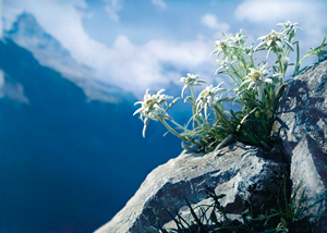 Aus den Bergsteiger-Filmen mit Luis Trenker in der Hauptrolle, die ich in meiner Kindheit gesehen habe, weiß ich es mit Bestimmtheit: Edelweiß wachsen nur an ganz ausgesetzten Stellen am Berg, zumeist an Felsüberhängen unweit eines Adlerhorstes, wo zusätzlich zu ihren gefräßigen Jungen die Adlereltern auch noch die unter strengem Naturschutz stehenden Blumen verteidigen und sich auf jeden Bergsteiger stürzen, der sich an ihnen vergreifen will. Konnten die Vögel mit ihren Krallen die Bergsteiger nicht vertreiben, so stürzten viele von ihnen ab. Wer trotz aller Widrigkeiten ein Edelweiß gepflückt hat und unversehrt ins Tal zurückgekehrt ist, der war ein Held. Ein richtiger Mann, dem die Bewunderung der Frauen nur so zuflog.