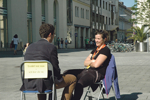 Sich bewusst Zeit nehmen für Gespräche aller Art ist Ziel des Projektes „Erzähl mir was – ich hör dir zu“. Initiiert wurde das Projekt von den Jugendleiterinnen Anita Buchberger, Katharina Brandstetter und Nicole Leitenmüller. An vier Abenden jeweils von 17 bis 20 Uhr werden in der Linzer Innenstadt Klappstühle aufgestellt die zum Reden einladen. Der letzte Termin ist am Donnerstag ,3. Juli von 17 bis 20 Uhr.