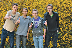 Die vier Burschen haben im Frühjahr eine eigene Zeitschrift gegründet. Unter dem Namen „Perspektive“ erscheint sie vier Mal im Jahr, mit selbst recherchierten Themen aus Umwelt, Wirtschaft, Ethik und Informatik. In der ersten Ausgabe spannen sich die Themen von werbefreiem Internet über Bienensterben bis zur Todesstrafe.