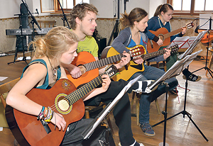 Zivilcourage-Training im Jugendzentrum Zoom. Vom 22. bis 23. März findet im Jugendzentrum Zoom in Linz ein Zivilcourage-Training statt. Weil es einfach Situationen gibt, in denen es nötig ist, für jemanden einzustehen, zu sagen, was man denkt. Die Teilnehmer/innen lernen dabei Handlungsstrategien mit vielen praktischen Übungen zum Thema „Zivilcourage“: Zielgruppe: junge Erwachsene zwischen 18 und 25 Jahren und Zivildiener, Referent/innen: Martin Loishandl und Margit Scherrer. Detailinfos und Anmeldung: ooe.kjweb.at/zivilcourage-trainingGitarre spielen wie die Profis. Rittersaal der Burg Altpernstein: Im Kamin lodert das Feuer, dazu Gitarren- und Cajon-Klänge von begeisterten Jugendlichen. Ein besonderes Flair bietet dieser Raum. Insgesamt sechs Musikgruppen sind in der Burg verteilt: In einer Gruppe finden sich die Anfänger, die anderen fünf sind zur Vertiefung gedacht in verschiedensten Richtungen, wie Verinnerlichung der Open Chords oder Barré-Akkorde aufpäppeln oder eigene Songs komponieren. Seit den 70er-Jahren gibt es die Klampfnwoche auf der Burg Altpernstein. Angeboten wird diese Woche von der Katholischen Jugend Oberösterreich für Jugendliche ab 16 Jahren. Heuer war es das zehnte Mal, dass Christopher Kopecny diese Woche organisiert (Mitte Februar). Zehn Berufsmusiker und angehende Musiker/innen vermitteln den Jugendlichen auf der Burg Altpernstein Klampfn-Musik in verschiedensten Variationen.