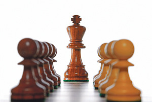 Große Behäbigkeit weist das Schachspiel dem König zu. Er kann nur einen Fuß vor den anderen setzen. Und dennoch müssen sich alle aus seinem Team in seinen Dienst stellen, sich nötigenfalls auch opfern.