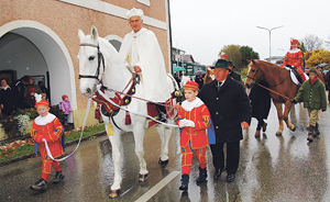Am 3. November fand in Pettenbach der Leon­hardiritt statt. Rund 50 Pferde samt Reiter/innen trotzten Regen und Sturm, angeführt von Pater Siegfried Eder vom Stift Kremsmünster (im Bild).