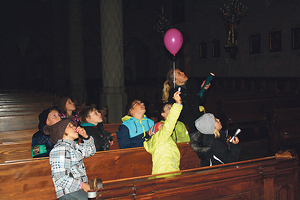 Geheimnisvolle Details kamen so zum Vorschein, wie Steinmetzzeichen, die ansonsten meist übersehen werden. Mit Gasluftballon und einer langen Schnur maßen die Kinder die exakte Höhe des Kirchenschiffes: Es sind beachtliche 15,28 Meter!